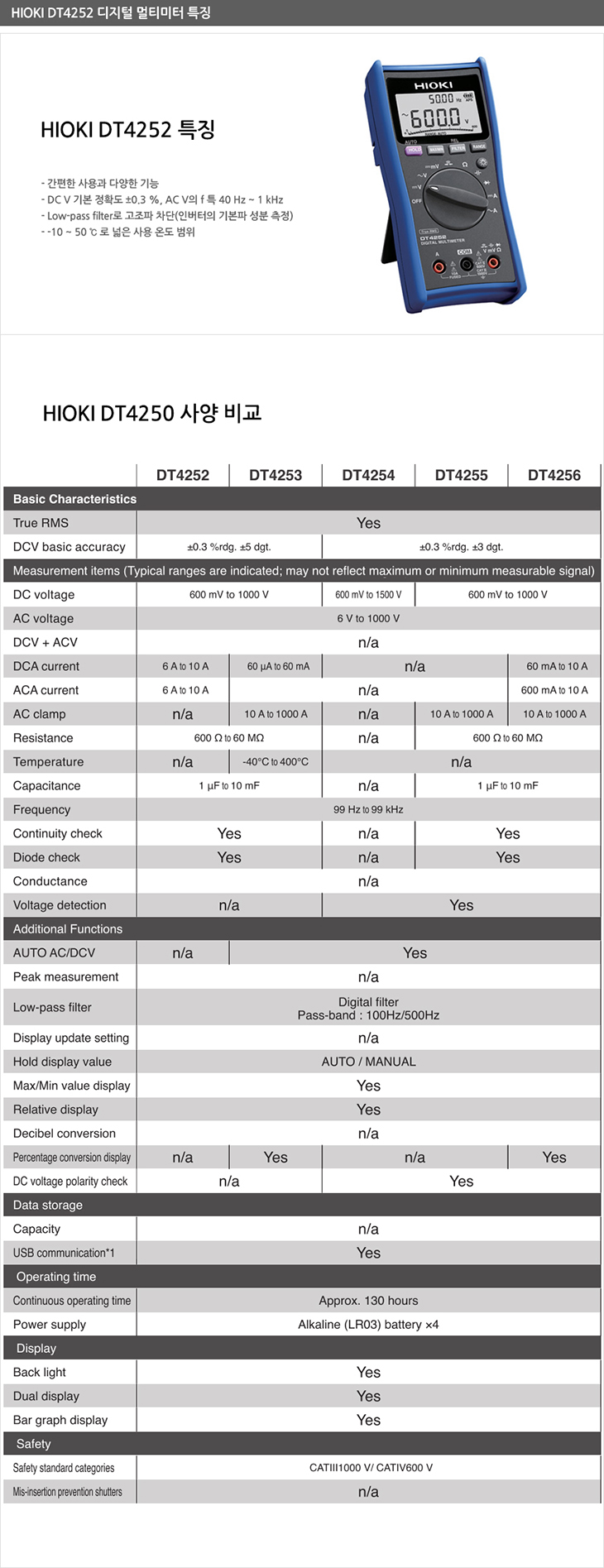 HIOKI DT4252 디지털 멀티미터/멀티 메타/메터/테스터