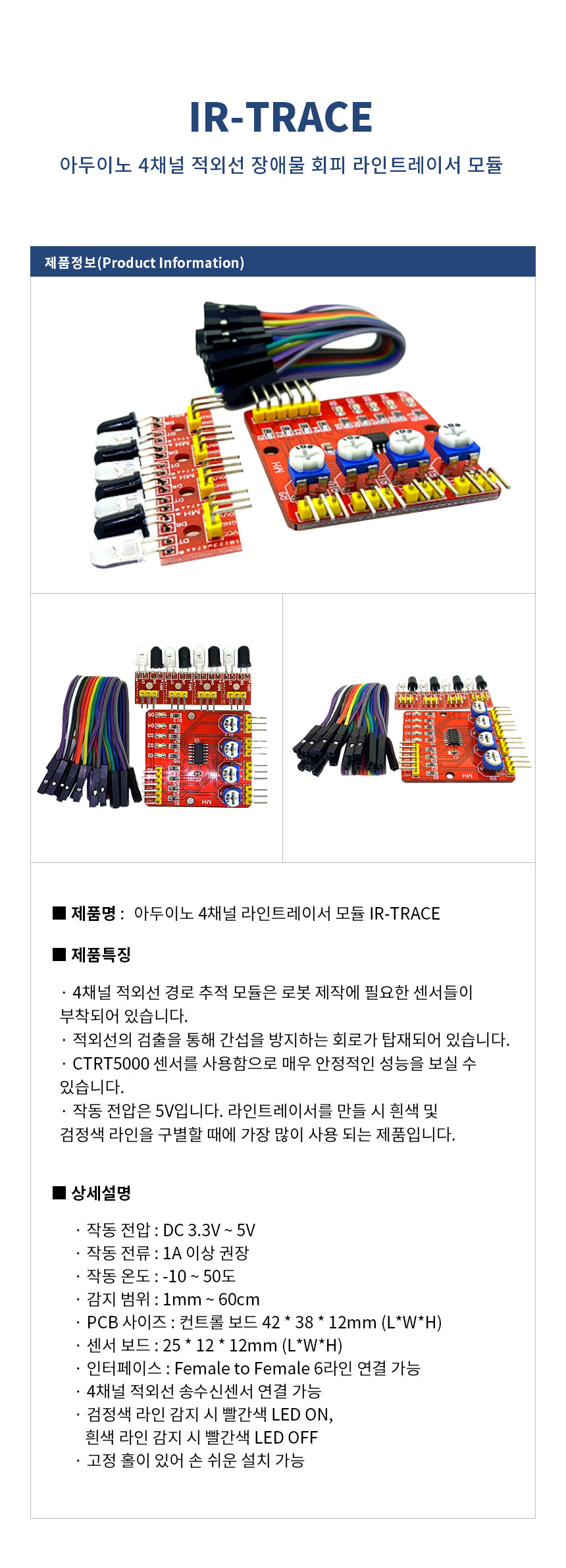 아두이노 4채널 적외선 장애물 회피 센서 모듈 라인트레이서 모듈 IR-TRACE