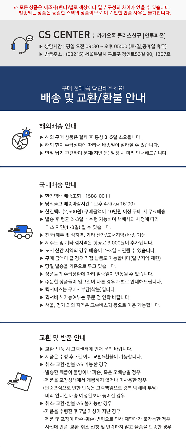 평균 배송일 국내 1~2일, 해외 3~5일 소요 (길어질시 개별연락)